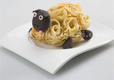 Mie juga bisa dibuat variasi bentuk yang lucu, seperti mie domba. Coba praktekkan yuk, kita berikan hadiah untuk si kecil.